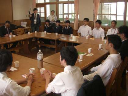 今日、修学旅行で京都へおこしの福島県いわき市立磐崎中学校6名代表生徒の皆さんが、蜂ヶ岡中学校を訪問してくださいました。両校の交流は平成25年度の生徒会の先輩が、東日本大震災を経験された学校に対し、出来ることを考えたことが始まりでした。その後もさまざまな形で交流を深めてきました。蜂ヶ岡中学校生徒会本部の8名と和気あいあいとした関西弁が飛び交う中、質問したりプレゼントの交換をしたり、楽しい時間を過ごしました。あらためて、人とのつながりを大切にしたいと思えるひとときとなりました。磐崎中学校の皆さん、どうぞ楽しい旅となりますように。