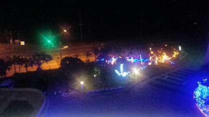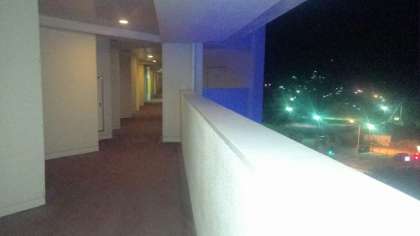 食事、リクリエーションと全体のプログラムが30分遅れで進行した為、就寝時間も10時30分になりました。概ね予定時間には就寝しました。その時間の生徒の宿泊階の廊下とそこから見えるホテルの玄関前の庭の様子(夜景)です。