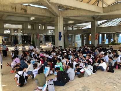 Bグループの美ら海水族館と昼食〔タコライス食べ放題)の様子です。