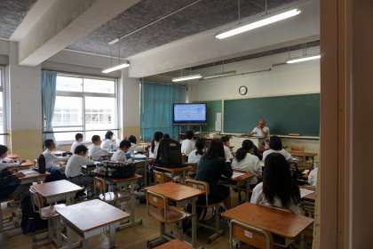 本日から1学期中間テスト一週間前です。そこで放課後、1、2年生は学習相談会が行われました。1年生は、社会を、2年生は、数学と自学自習を行いました。真剣に先生に質問したり、お互いで教えあったりしていました。まずは、1年生の様子です。