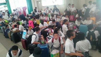 那覇空港に到着しました。これから手荷物を預け、セキュリティチェックに向かいます。
