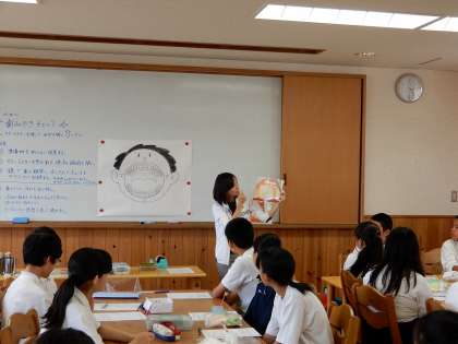 本日、放課後保健委員会主催の「歯磨き指導」が生き生き交流ルームで行われました。参加者は、各クラスの保健委員と各クラスの有志の人たちです。まず、養護の先生から本日の説明を受けました。