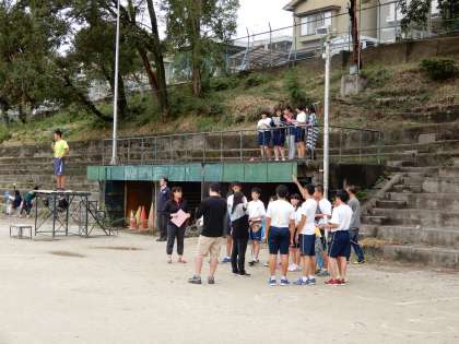 朝のグランド整備のおかげで、体育大会練習が実施できました。準備してくれた皆さんに感謝します。開・閉会式練習と組み体操の位置取りを確認しました。