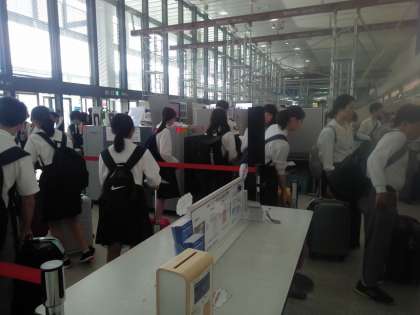 空港ターミナルに移動し、手荷物預けを開始しました。次にセキュリティチェックを受けていよいよ飛行機に搭乗します。