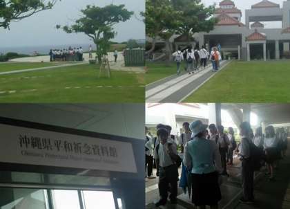 クラス写真を「平和礎」の広場で撮影したクラスから順次、沖縄県平和祈念資料館の見学を開始しました。この後、2時30分から平和祈念堂に移動し、沖縄戦についてのお話しを全員で聞かせて頂く予定です。