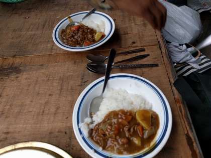 見事なカレーが完成しました。とてもおいしそうです。これから昼食です。