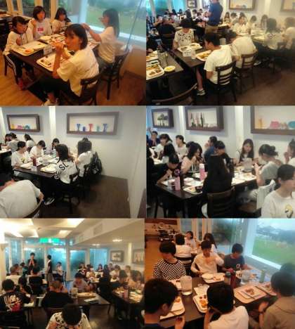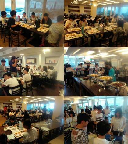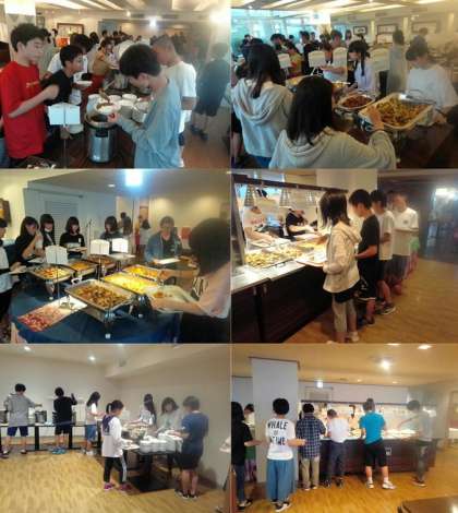 2日目の夕食の様子です。体験活動後なので表情が少し疲れたようにも見えます。しっかり食べて元気を付けて下さい。今日はこの後、学年レクリエーションを予定しています。大いに盛り上がって下さい。