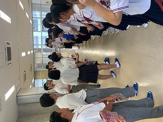 嘉数中学校の生徒会本部の皆さんから29名の方と交流会で和気藹々と過ごしました。