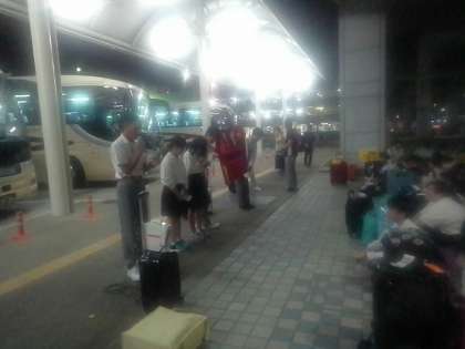 修学旅行実行委員の代表者が3日間お世話になったカメラマンさん,添乗員さんにお礼の言葉を言いました。カメラマンさん,添乗員さん,3日間本当にお世話になり,ありがとうございました。