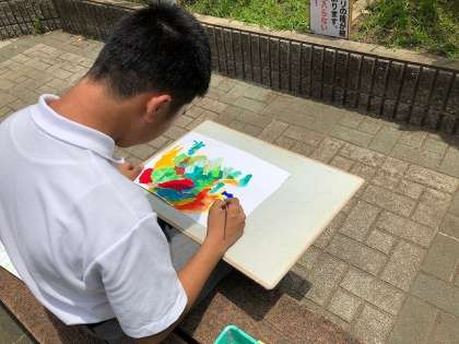 4限8組は、美術の授業で外に出て写生会をしました。どの生徒も草花を真剣に観察し、描いていました。