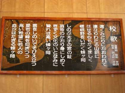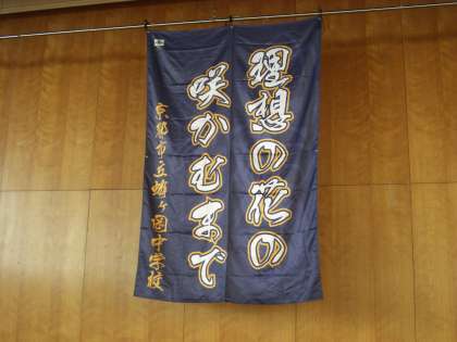 1年生の皆さんは体育館に行ったことは数回だと思いますが・・・立派な校歌の歌詞が体育館には掛かっています。音楽の授業でも頑張って校歌をおぼえている真っ只中ではないでしょうか…