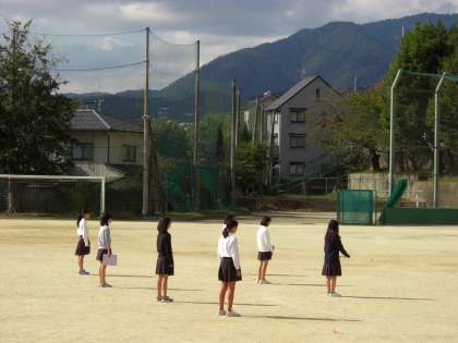 秋晴れの空の下、グランドで歌う姿。とても気持ちよさそうです。