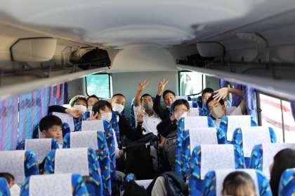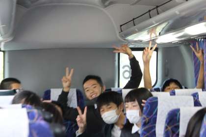 現在、滋賀県を移動中です。バス内で号車ごとに満喫中の様子です。