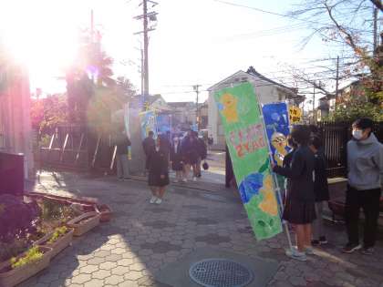 12月のおはようDaysです。朝の日差しがまぶしい中、おはようの声が響き渡っていました。