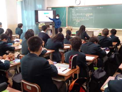 1年生の理科の様子です。レンズを通った光について学習していました。タブレットを使って、光の通る動きを画面で説明され、とてもわかりやすかったです。