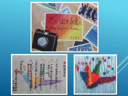 3年生の教室のある中校舎を歩くと,掲示板に修学旅行に向けての掲示物がありました。夏休み中も実行委員のメンバーが「思い出を永遠(とわ)に 〜The brightest future〜」のスローガンの下,準備を進めてくれていました。