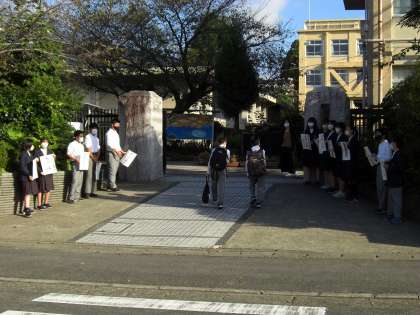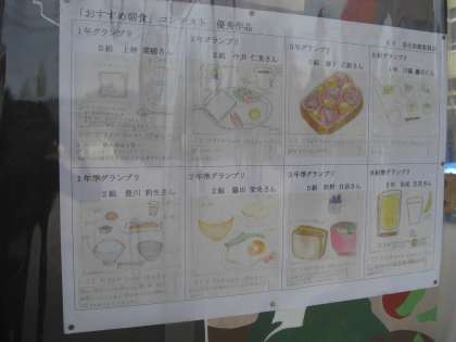 21日の生徒会本部役員立会演説会と選挙へ向けて、朝の選挙活動がスタートしました。朝の寒いなか、どの立候補者も元気にアピールをしていました。明日はリハーサルも控えています。また先日お伝えした生活確立週間で美化保健委員会が取り組んだ朝食コンテストの結果が各学年フロアに掲示されています。ぜひ見てください!