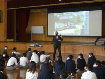 6限に教育委員会より講師をお招きして1年生の非行防止教室を実施しました。いろいろな角度から現代に潜む問題を話していただきました。今後もネット社会がより一層進むなか「一度立ち止まって考える」を合い言葉に色々なことに気をつけながら生活していきましょう。