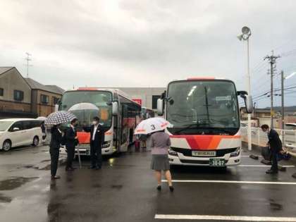 3年生は無事に6時40分全車出発しました。一路、広島を目指します。雨も西に向かえば向かうほど上がりそうですね。気をつけていってらっしゃい!