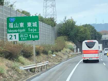 もうすぐ福山サービスエリア到着です。広島県に入っています。
