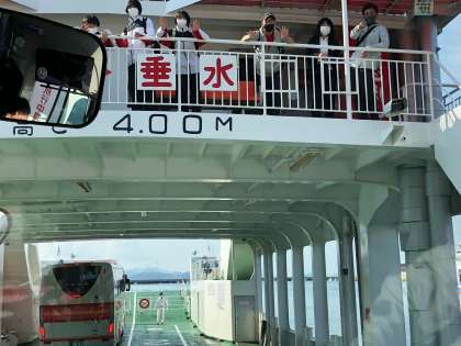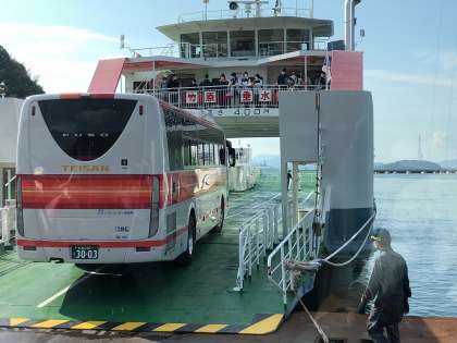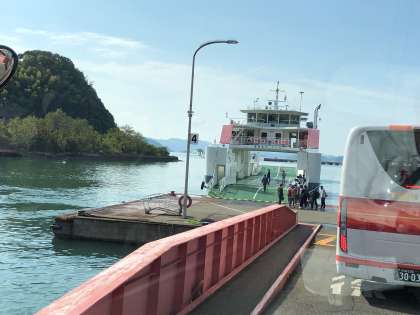 竹原港に到着。フェリーへ乗車して、今度は大崎上島の白水港を目指します。