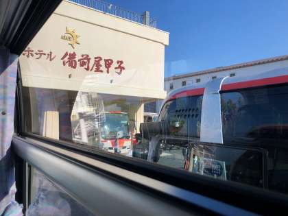 バスはホテルを出発。鷲羽山展望台へ向かっています。