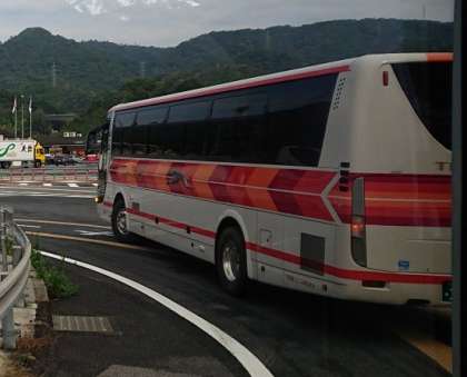 現在、先頭車両は茨木市付近を走行中です。あと30分ほどで京都縦貫道大原野インター通過の予定です。