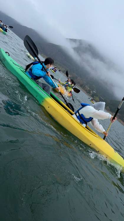 こちらはパラグライダーから変更になった西湖でのカヌー組