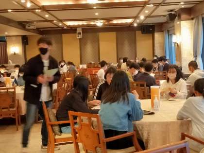 ホテル到着後,部屋長会議では,今晩の予定や,明日の朝の段取りをあわただしく確認中です