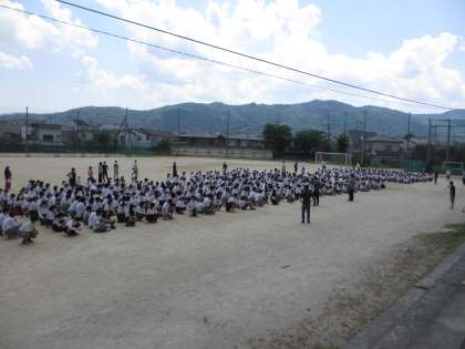 火災を想定して避難訓練を行いました。2年間全学年対象に実施できていなかったので、今日のねらいは「放送の指示、避難経路の確認、点呼の仕方」を確認です。「もしもの時にために」を意識して行うことができましたか。今日は学活の時間でクラスにいるときの動きでしたが、休み時間や部活動等で、先生が近くにいない時どう行動するかが大切です。また、学校にいるときだけでなく、学校外等で友達や家族といるときに、適切な対応ができるようになってほしいです。