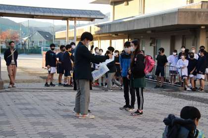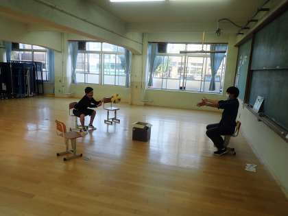 常磐野、嵯峨野の両小学校の6年生を中学校へ招き、