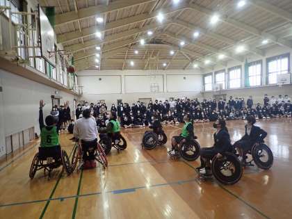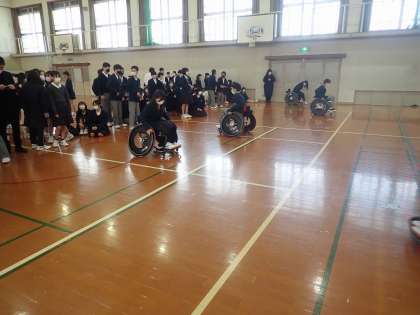 生徒たちはリレーで車いすの動かし方を知り、試合形式での車いすバスケットに一生懸命に取り組んでいました。
