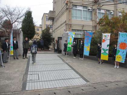 今年最後の“おはようDays”が行われました。先月、生徒会本部役員の引継ぎが行われ新本部での活動です。少し早い時間だったので登校する生徒もまばらでしたが、「おはようございます」とあいさつを交わしていました。