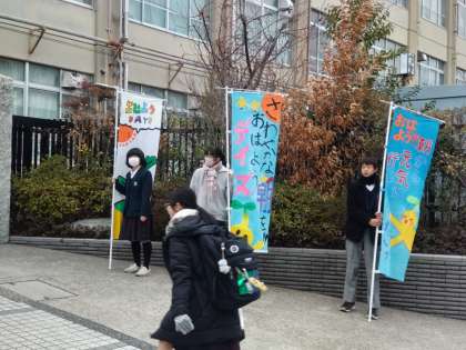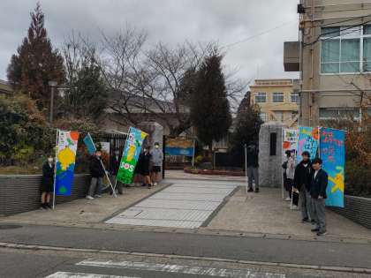 おはようございます。今朝は随分冷え込んでいます。2月の「おはようDays」の様子です。本部役員と1年生活委員が当番になっています。