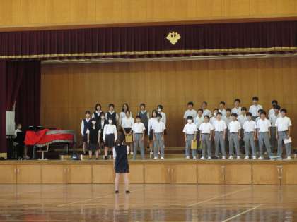 体育館や音楽室等、ピアノのある部屋へクラス毎に移動しながら合唱の練習です。まだ本格的には3日目ということもあって、体育館でも若干音量は少なめ・・・。これから本番に向けて仕上げていく様は、毎年感動ものです。写真は2年生の様子です。