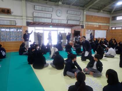 太鼓の合図とともに、学年の先生から百人一首が詠まれると、