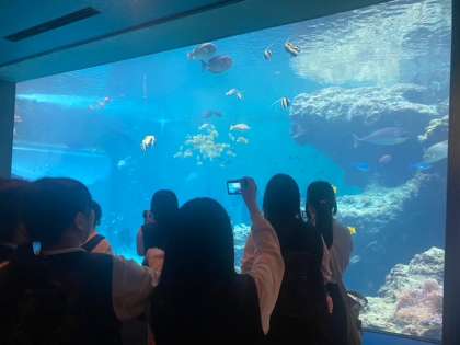 ジンベイザメが泳ぐ大水槽でみんな興奮です