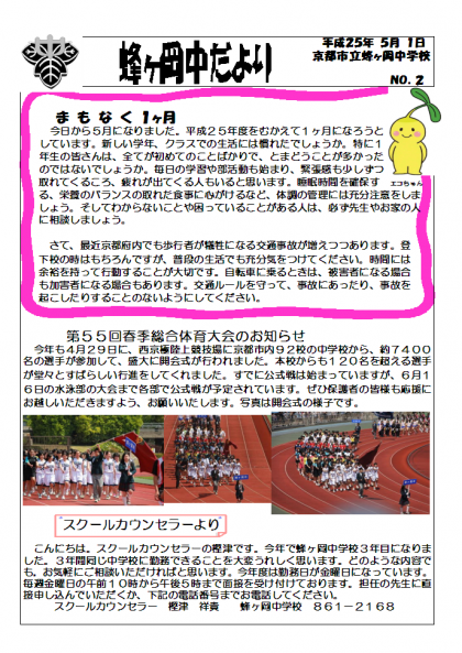 京都市立蜂ヶ岡中学校「学校いじめ防止基本方針」