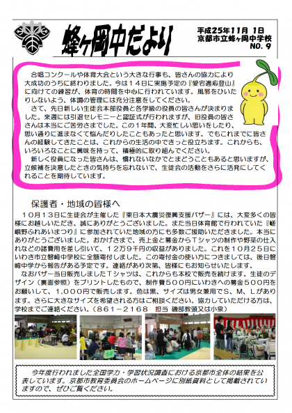 京都市立蜂ヶ岡中学校「学校いじめ防止基本方針」