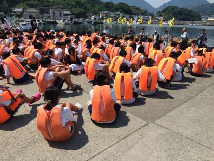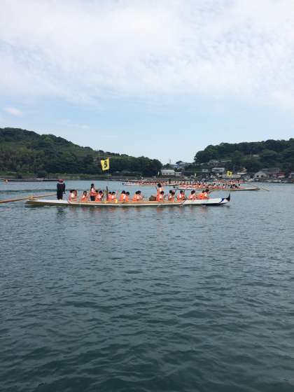 いよいよ1日目のメインイベントであるペーロン大会が始まります。説明を聞き,いよいよペーロンに乗船!練習開始です。クラスで協力して優勝目指しましょう!