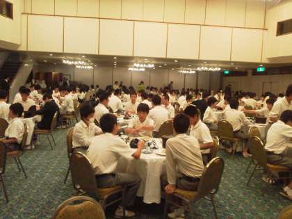いよいよ修学旅行2日目がスタートしました。今日もいい天気です。みんな揃っていただきます。今日は,一日,長崎での平和学習・長崎市内班別研修が予定されています。