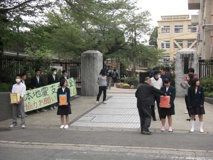 朝、校門で生徒会の生徒の「募金協力お願いします。」の声が響いていました。