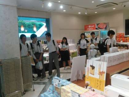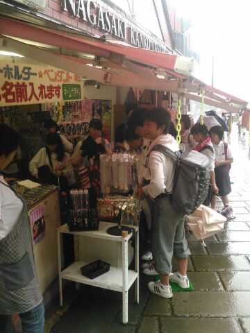 あいにくの雨模様ですが,班別自主研修がすすんでいるようです。お土産さんで買い物中。