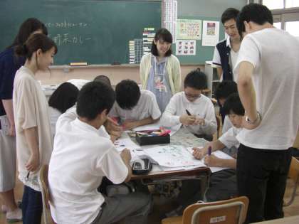 9組の皆さんは8月24日・25日に花背山の家へ合同サマーキャンプへ行きます。本日は学生ボランティアとして同志社大学生が、キャンプの打ち合わせに来校されました。当日もお世話になります。