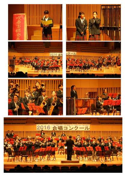 合唱コンクールの午後吹奏楽部が発表し、会場を盛り上げてくれました。その後全校合唱「翼をください」を歌いました。ホールに響く感動的な合唱で蜂ヶ岡中がひとつになった感覚でした。