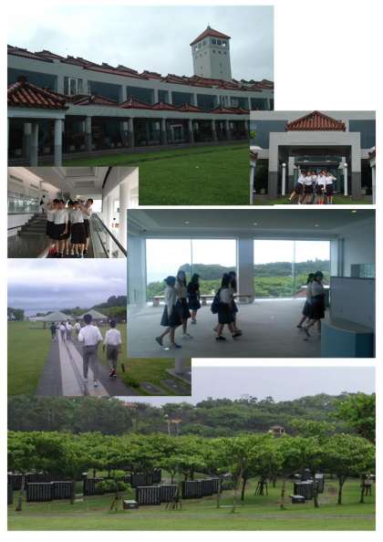 平和祈念公園に到着し見学している様子です。平和祈念公園は本島南部の「沖縄戦終焉の地」糸満市摩文仁の丘陵を南に望み,南東側に険しく美しい海岸線を眺望できる台地にあります。公園内には沖縄戦の写真や遺品などを展示した平和祈念資料館があり,平和の尊さを体感したと思います。これから美ら海水族館へ出発します。