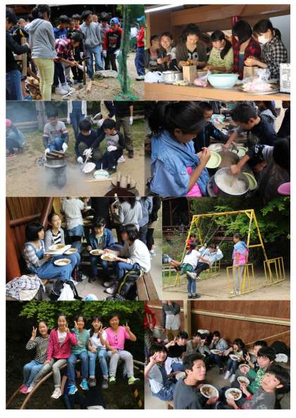 昨日,1年生は大森リゾートキャンプ場へ校外学習に行きました。集団行動や学級の親睦や仲間との交流・協力を目的に,カレーライスを作りました。おおむねみんなが協力しておいしいカレーができました。