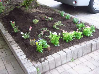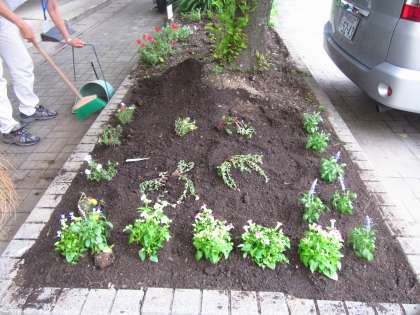 昨日園芸部は校門入ってすぐの花壇を整理し、花を植えてくれました。