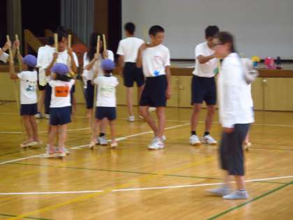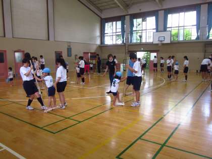 蜂ヶ岡保育園の園児の皆さんに来ていただき、竹馬のりの補助をしました。