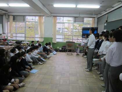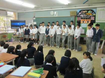 2つクラスがそれぞれ歌いあい、いいところ、課題なところを発表しあいました。